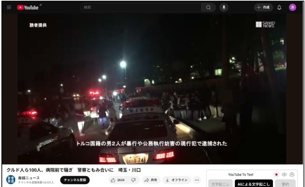2024 年 7 月、川口市内でクルド人同士の殺人未遂事件が発生し、負傷者が搬送された病院に約 100 人のクルド人とみられる人々が集結し、警察が出動する騒動となりました 。この騒動により、病院は一時的に救急の受け入れを停止せざるを得ませんでした 。これらは、報道や公的記録で確認できる「事実」です。また、一部の外国人による危険運転や騒音といった地域住民からの苦情が以前から市に寄せられていたことも川口市議会議員からも公表されています。