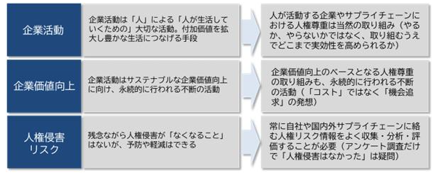 【図表1 ⼈権尊重の取り組みで先⾏する企業に⾒られる考え⽅】